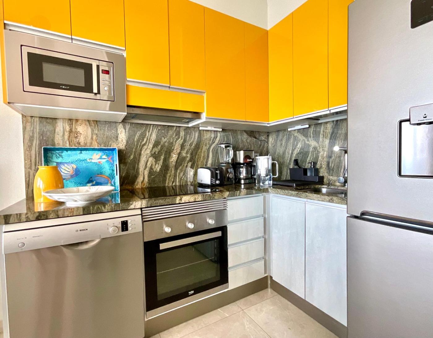 Apartment with Sea View. This spacious apartment is comprised of 1 living room, 2 separate bedrooms and 1 bathroom with a walk-in shower and free toiletries. Meals can be prepared in the kitchen, which comes with a stovetop, a refrigerator, a dishwasher and kitchenware. Featuring a terrace with sea views, this apartment also offers a washing machine and a flat-screen TV with streaming services. The unit offers 4 beds.