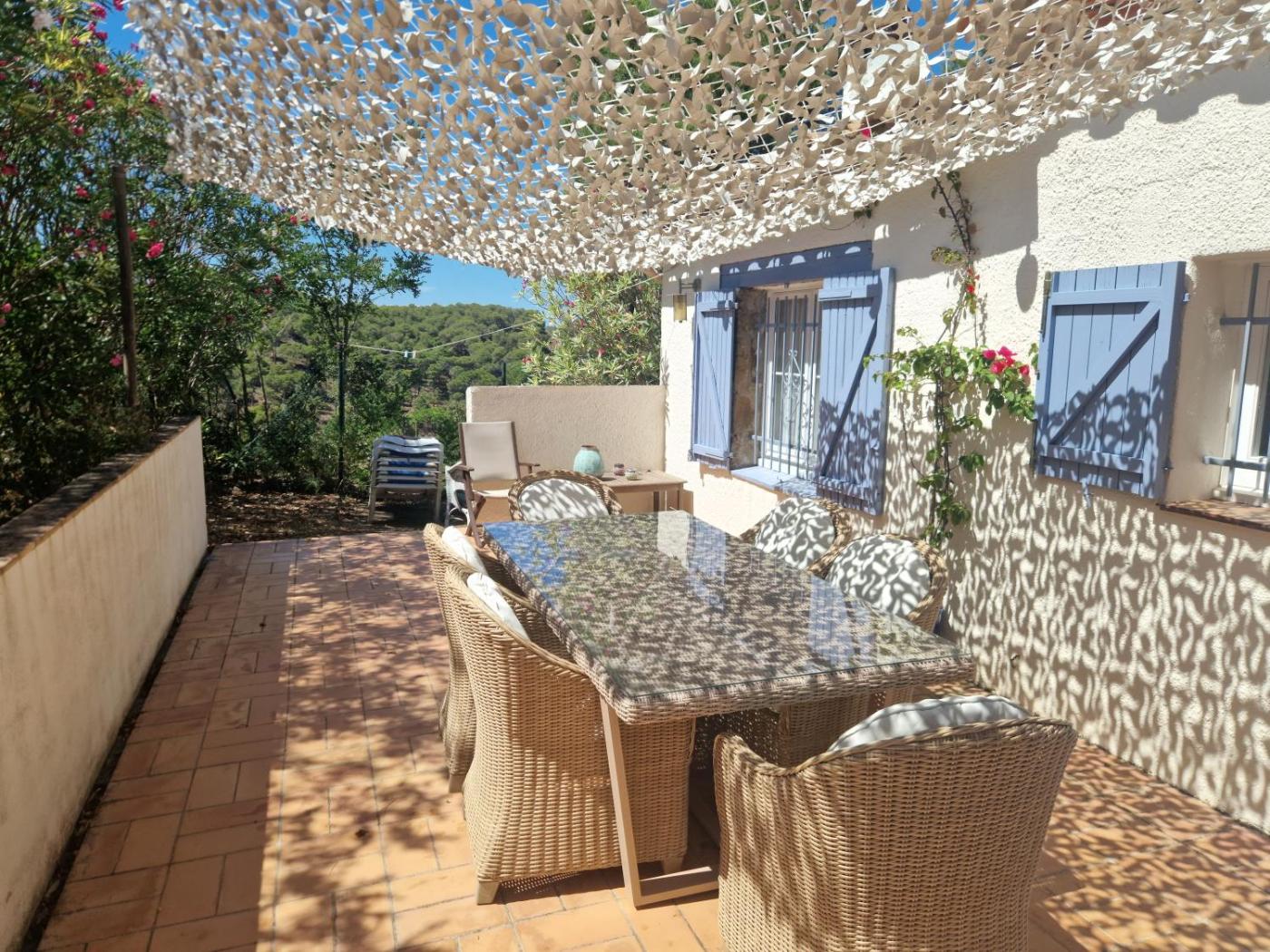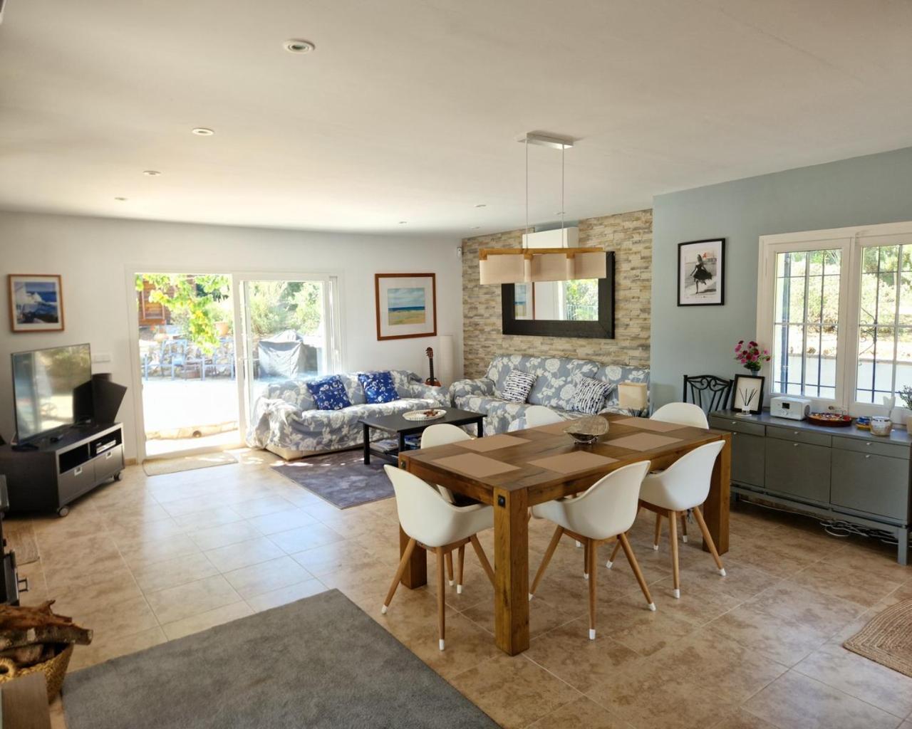 The villa is equipped with 4 bedrooms, 3 bathrooms, bed linen, towels, a flat-screen TV with streaming services, a fully equipped kitchen, and a terrace with garden views. There is also a seating area and a fireplace.