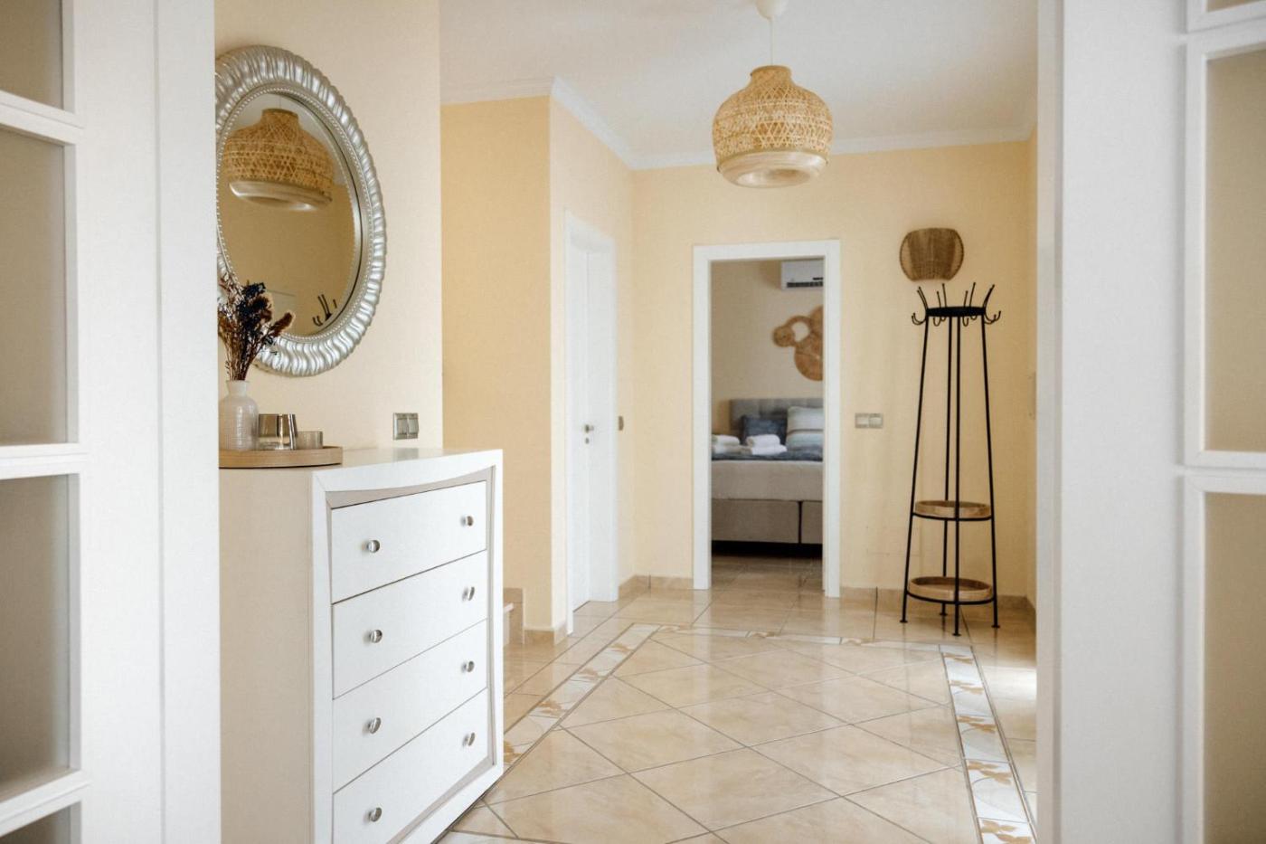 The spacious villa with a terrace and sea views has 3 bedrooms, a living room, a flat-screen TV, an equipped kitchen with a dishwasher and an oven, and 4 bathrooms with a hot tub. Towels and bed linen are available in the villa. The property has an outdoor dining area.