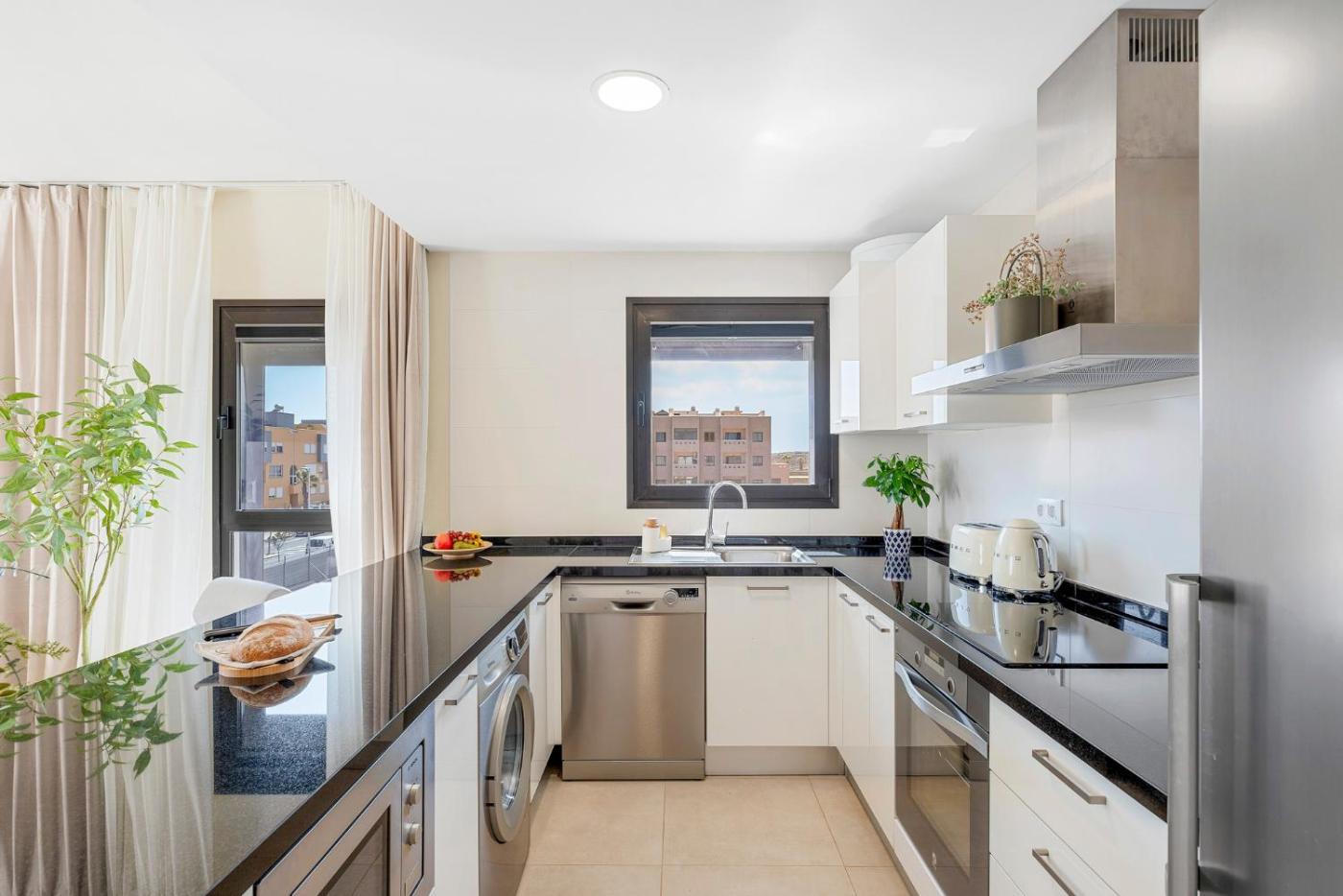 Two-Bedroom Apartment with Balcony and Terrace. The hot tub is a top feature of this apartment. Boasting 2 bedrooms, this spacious apartment has 2 bathrooms with a shower, a seating area and terraceyou can relax. In the fully equipped kitchen, guests will find a stovetop, a refrigerator, a dishwasher and kitchenware. The apartment has a washing machine, a tea and coffee maker, a dining area as well as a balcony with pool views. The unit offers 2 beds.