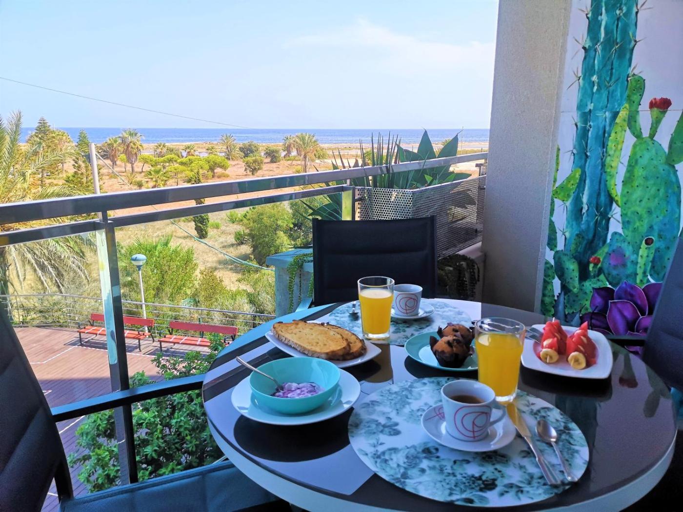 The apartment with a balcony and sea views has 1 bedroom, a living room, a flat-screen TV, an equipped kitchen with an oven and a microwave, and 1 bathroom with a bidet. Towels and bed linen are offered in the apartment. The property has an outdoor dining area.