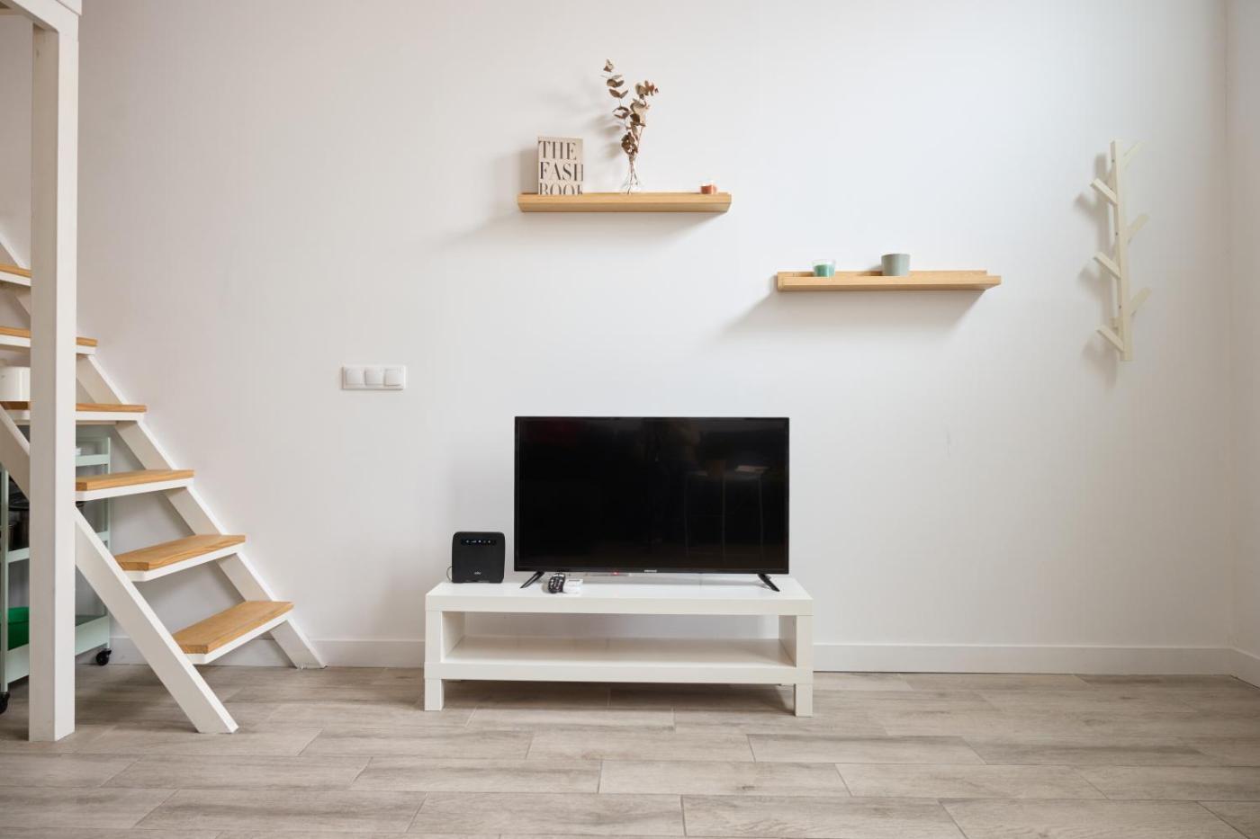 One-Bedroom Apartment. Featuring a private entrance, this air-conditioned apartment is comprised of 1 living room, 1 separate bedroom and 1 bathroom with a shower and a hairdryer. Meals can be prepared in the well-fitted kitchen, which is fitted with a stovetop, a refrigerator, a dishwasher and kitchenware. The apartment offers a washing machine, a coffee machine, a seating area, a wardrobe, as well as a flat-screen TV. The unit offers 2 beds.