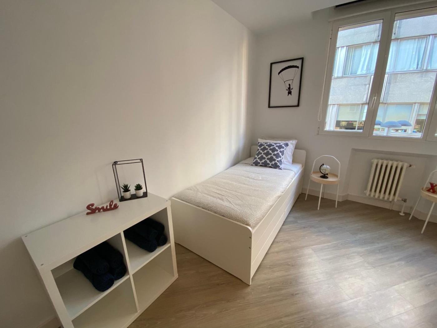 Three-Bedroom Apartment. The spacious apartment features 3 bedrooms and 2 bathrooms with a shower and free toiletries. Guests can make meals in the kitchen that comes with a refrigerator, a dishwasher, kitchenware and a microwave. The air-conditioned apartment provides a flat-screen TV, a washing machine, a coffee machine, a wardrobe as well as city views. The unit offers 4 beds.