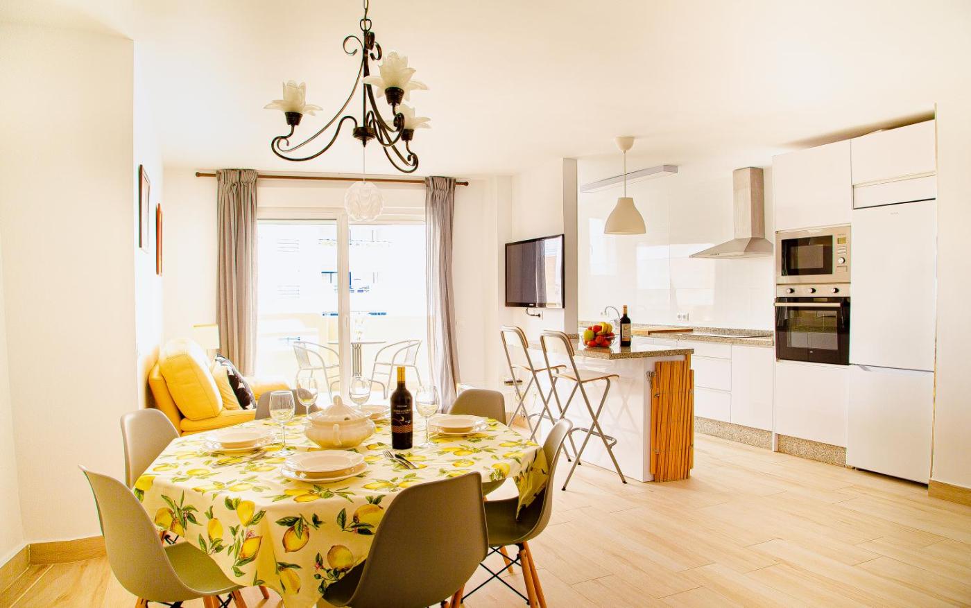 Three-Bedroom Apartment. The pool with a view is the standout feature of this apartment. This spacious apartment includes 1 living room, 3 separate bedrooms and 2 bathrooms with a shower and a hairdryer. The fully equipped kitchen has a refrigerator, a dishwasher, kitchenware and an oven. The air-conditioned apartment offers a flat-screen TV, a washing machine, a coffee machine, a seating area as well as sea views. The unit has 4 beds.