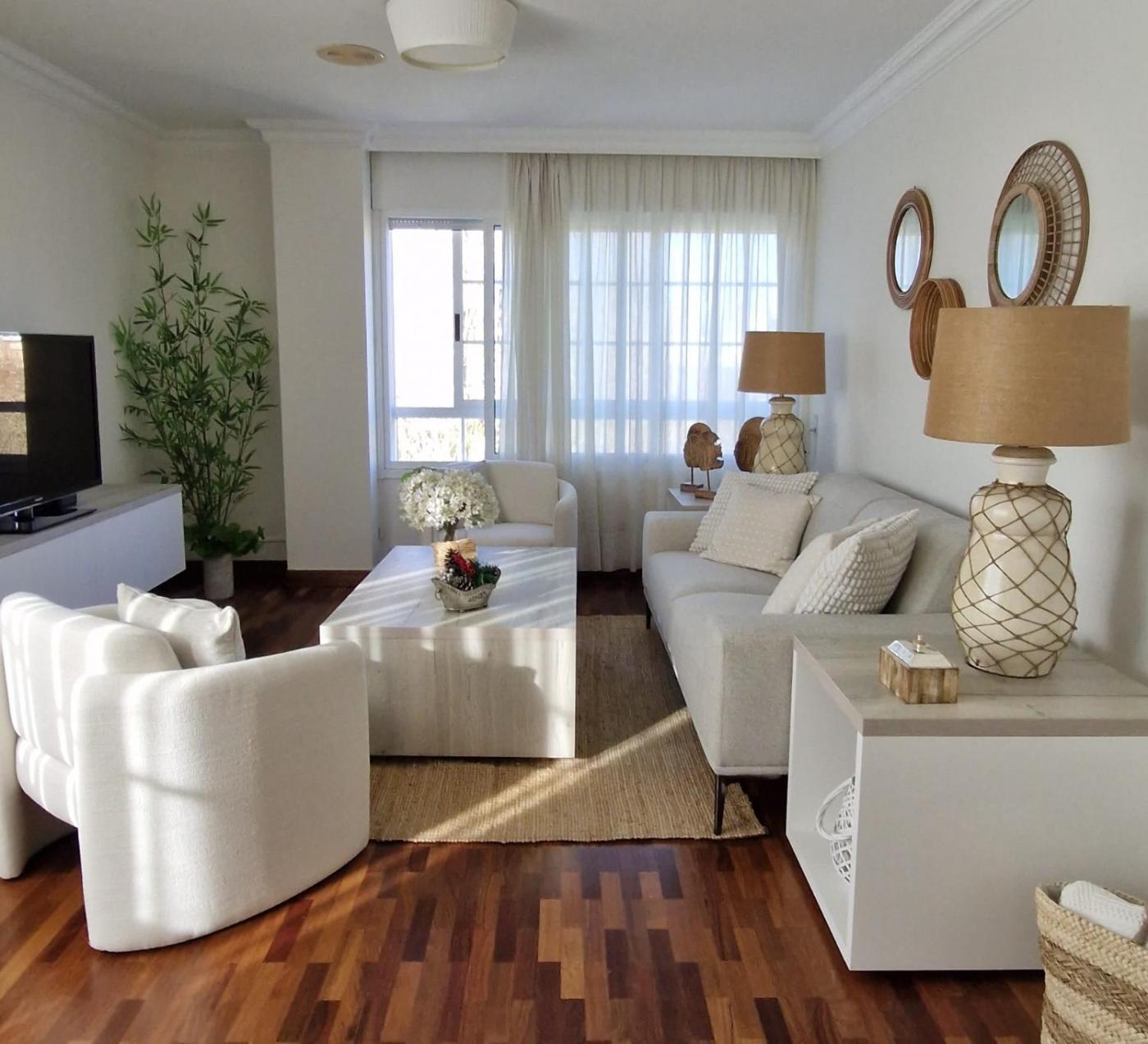 Three-Bedroom Apartment. This spacious apartment features 1 living room, 3 separate bedrooms and 2 bathrooms with a bath. Guests can make meals in the kitchen that has a refrigerator, a dishwasher, kitchenware and an oven. The apartment features a flat-screen TV, a washing machine, a coffee machine, a wardrobe as well as sea views. The unit has 4 beds.