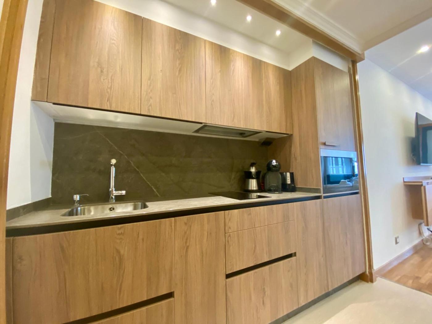 One-Bedroom Apartment. This air-conditioned apartment comprises 1 living room, 1 separate bedroom and 2 bathrooms with a walk-in shower. Meals can be prepared in the kitchen, which comes with a stovetop, a refrigerator, kitchenware and a microwave. The apartment provides a flat-screen TV with cable channels, a washing machine, a minibar, a coffee machine as well as city views. The unit offers 2 beds.