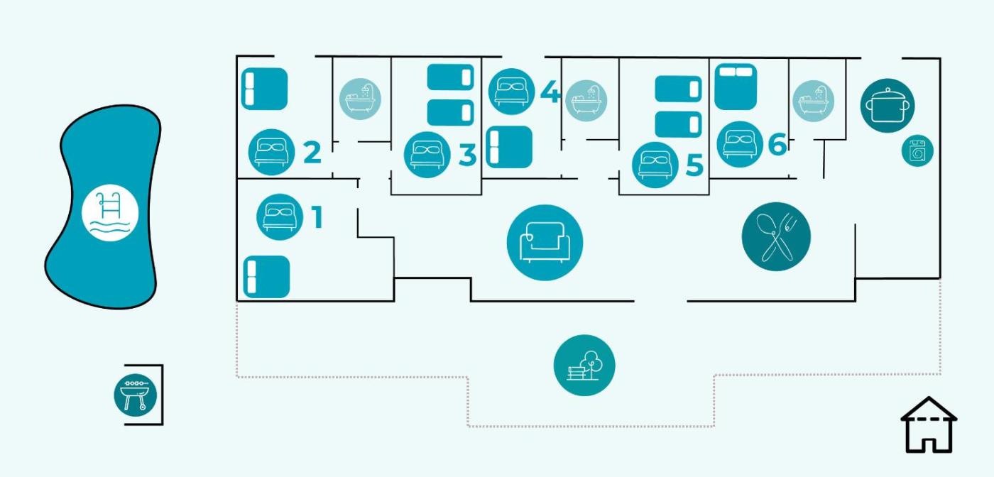 Holiday Home. The private pool and fireplace are the special features of this holiday home. Guests will find a refrigerator, a dishwasher, kitchenware and an oven in the fully equipped kitchen. The holiday home also provides guests with a barbecue. The spacious holiday home provides air conditioning, a washing machine, a terrace with garden views as well as a shared bathroom featuring a bath. The unit offers 8 beds.